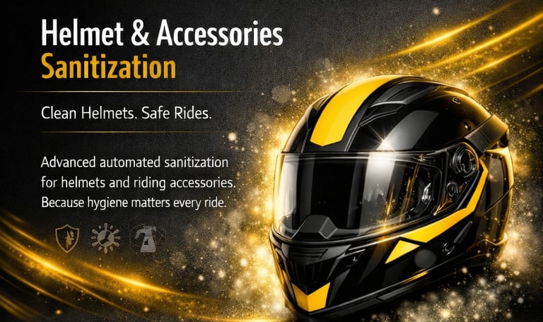 Professional helmet cleaning ensuring hygiene and safety for every rider.
